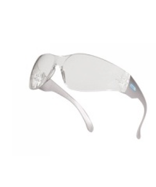 Apsauginiai akiniai BRAVA2 CLEAR. Vieno lęšio polikarbonatiniai stiklai. Lanksčios minkštos kojelės. Polikarbonato paminkštinimas nosies srityje. Patogu naudoti su saugos šalmu ir ausinėmis. Yra akių apsauga iš šono. Akiniai lengvi, gerai prisitaiko prie veido formos.LĘŠIAI: polikarbonatiniai (PC), atsparūs įbrėžimas, smūgiams, UV spinduliams